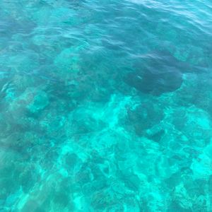 午前中は天気が悪く、島に着いた時点で雨が降っていたのですが、雨が弱まったタイミングでシュノーケリングへ。シュノーケリングスポットまでの船は波もあったからか激しく揺れました。シュノーケリングスポットに着き、海へ。マンタが複数いて、近くで泳げました!大満足です!