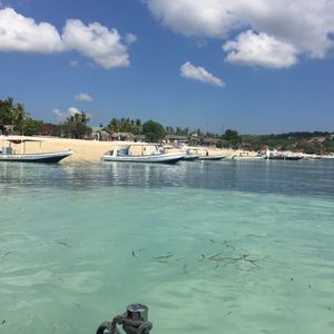 快晴の中、船でレンボンガン島へ向かい、アクティビティーを行いました。海が澄みきっていて、すごく綺麗でした。バナナボート、マリンウォーク、シュノーケリングとあまりゴタゴタにならずスムーズに出来て楽しめました。担当の係員の方はとても気さくに話しかけてくれたり、ギターを弾いて一緒に浜辺で歌ったり最高の思い出が出来ました。レンボンガン島で行ったアクティビティーや雰囲気はとっても良かったのですが、帰りの送迎の際、運転手の運転がとても荒く、案の定、衝突事故に巻き込まれました。お客様を、乗せてる以上もっと安全運転を、心がけて欲しいと思ったことと、
