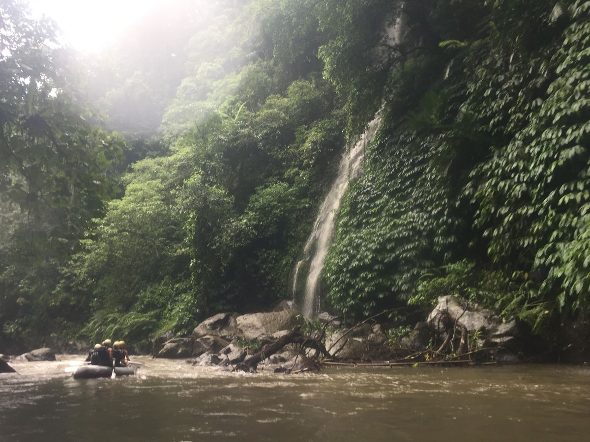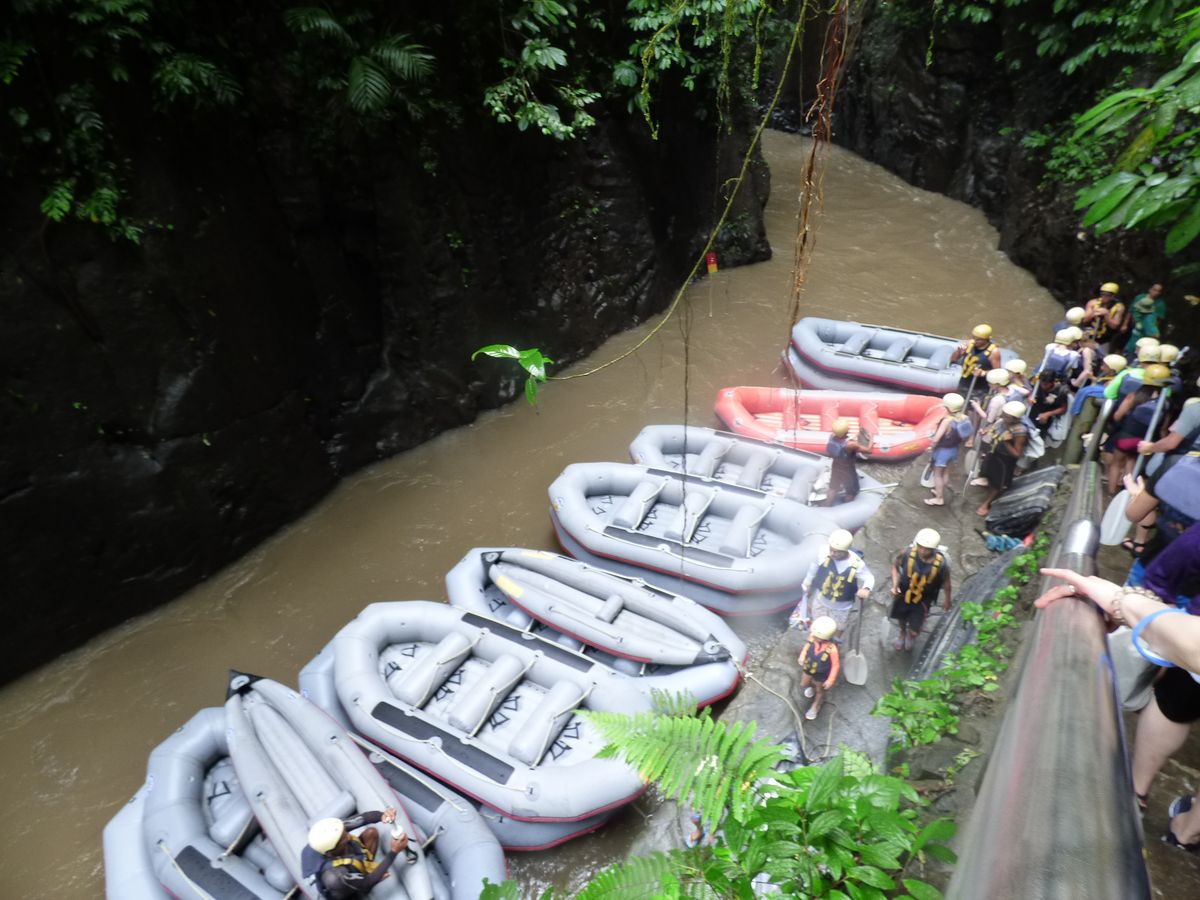 バリの深い渓谷やたくさんの滝、遺跡(?)、高級リゾートホテルなど、変化がある景色も楽しめます。途中からいろんな会社のボートが加わってきますが、この会社が一番上流から出発するのではないでしょうか。段々と流れが緩やかになってくるので、スリリングなラフティングを楽しみなら上流から出発するこの会社がおススメだと思います。