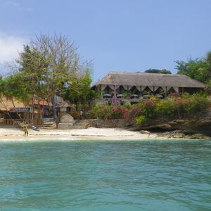 港から約1時間半の船旅を終えると、そこはバリ島とは別世界の静かで美しいビーチでした。日本人はやはり少なく不安でしたが、スタッフの気遣いも素晴らしく、問題ありませんでした。ソフトドリンク、ビール、ワインの交換券を各1枚もらえるため、追加費用もありませんでした。
