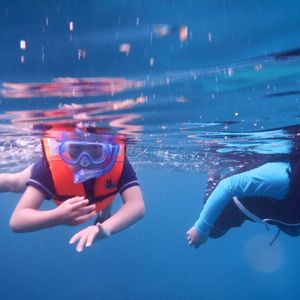 シュノーケルは足がつなかい所へ行くので泳ぎが苦手な人はライフジャッケット必須です。