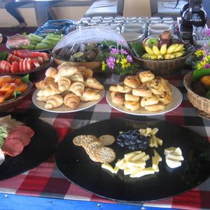ランチはバーべキューバイキングでおいしかったです。好みによりますが、牛肉、鶏肉、豚肉がプレートに山になっています。おかわりしようと鶏肉を取りに行ったところ人気があるらしくなくなっていました。