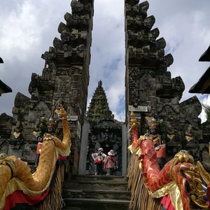 キンタマーニ高原に到着すると、ちょうどヒンズー教寺院(Pura Gunung Menak Batur)のお祭りをやっていた。