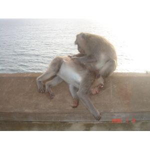 わたしはたまたまちょっと出ていた携帯ストラップを見つけられ、飛び掛ってきました…!!サルにはホント注意が必要です^^;