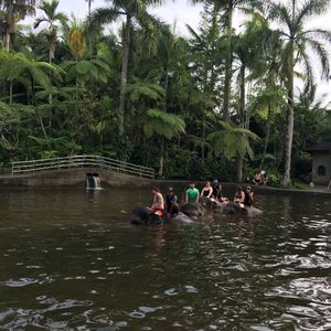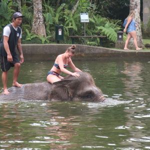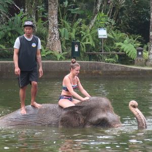 象の圧倒的迫力とパワーに驚く。ガイドは定刻にホテルロビーまで迎えに来てくれた。2人だけの貸し切り状態。綺麗なワゴン車。アタとバテックの制作している店でショピングしてからエレファントファームへ。少し遠い。園内には数十頭の象がいて人を乗せたり 水浴び 洗われいたり 絵を描いてたり。糞の浮いてるきたないプールでは白人のビキニの女性が喜んでいました。象が鼻を出して潜水します。また日本人が婚礼を挙げてます。商業的ではありますが突き抜ける楽しさがありお勧め。キンタマーニ高原は涼しく綺麗。ライステラスも素敵です。お勧めのコース。