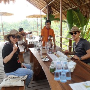 友人と二人にガイドの方一人ついてくださり、行き先なども希望の場所に変更して頂くことができました。エレファントパークとキンタマーニ高原でのランチの後、ライステラスの予定でしたがコーヒー作りの見学に変えてもらいました。ゾウに乗ったり、触ったり、とても貴重な経験ができました!!