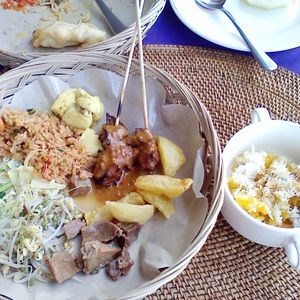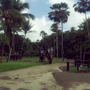 エレファントライドが終わったらお昼ご飯でした。レストランは広場や池の隣にあって、遠目に象が見えます。ご飯はビュッフェでインドネシアの料理や果物が好きなようにとれました。ドリンクは別料金ですが、注文は強要されません。レストランもリゾート感があってよかったです。