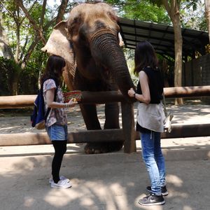 友達と一緒に象に乗っているところを撮ってと象使いの人にお願いしたら、後ろ向きに乗って撮ってくれました。象に乗ったら雨がやんで、濡れた傘をどうしようか困ってたら椅子の下にしまってくれたり、日本人だからと漫画の話をしてくれたり、対応がよかったです。