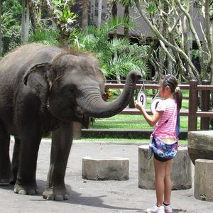 象乗りができるのはタイだけではありません!バリ島でも存分に象乗り体験(エレファントライド)が楽しめます。 インドネシアには固有種のスマトラ象が生息し、絶滅危惧種にも指定された象の保護を目的としたエレファントパークが複数存在します。 象乗りとウブド・キンタマーニ高原ツアーが一緒になった1日ツアーや、夜空の元で象乗りができたり、同敷地内でラフティングと人気のポッドチョコレート工場(Pod Chocolate)まで楽しめるエレファント・キャンプ、サファリパークや動物園でも象と触れ合うことができ、様々な選択肢から選ぶことができます。 象乗りだけでなく、お絵かきをする象のショー鑑賞や、象の水浴びを手伝うなど、他ではできない体験ができるのがバリ島!忘れられない思い出として、ぜひお子様連れやハネムーンでもご参加ください。