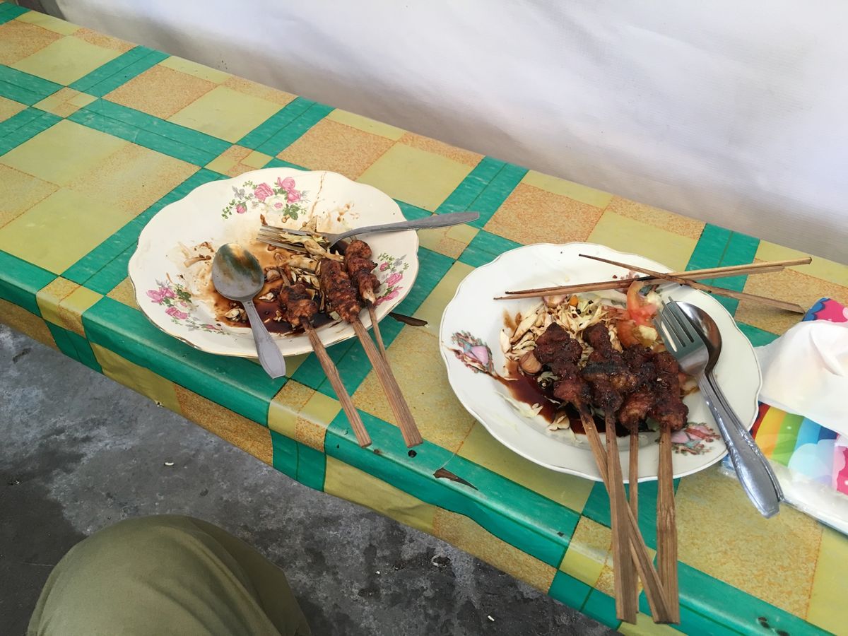 帰りに少し時間があったのでワガママを言い、インドネシア風サティー(醤油ベース)を出す屋台へ これがまた美味しく満足しました。