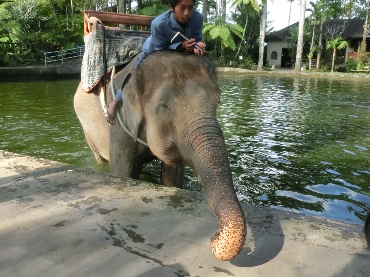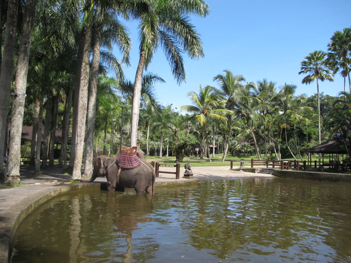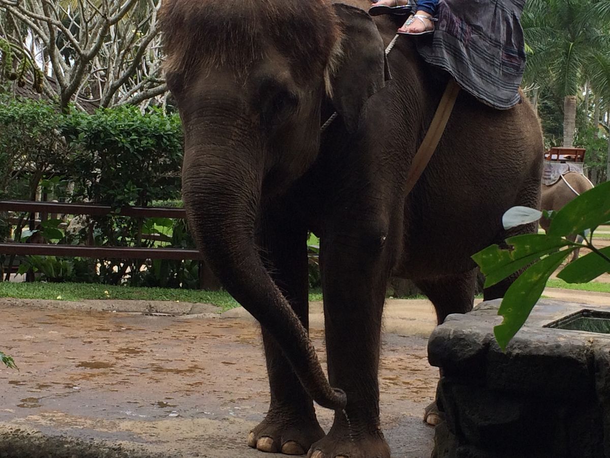 ゾウがいる広場を見渡せる会場でのブュッフェランチも美味しく、施設内のトイレも清潔でした。8時にクタのホテルに送迎があり、現地を 12時半~1時に出発し、ホテルに帰ってきたのが、2時半くらいでした。