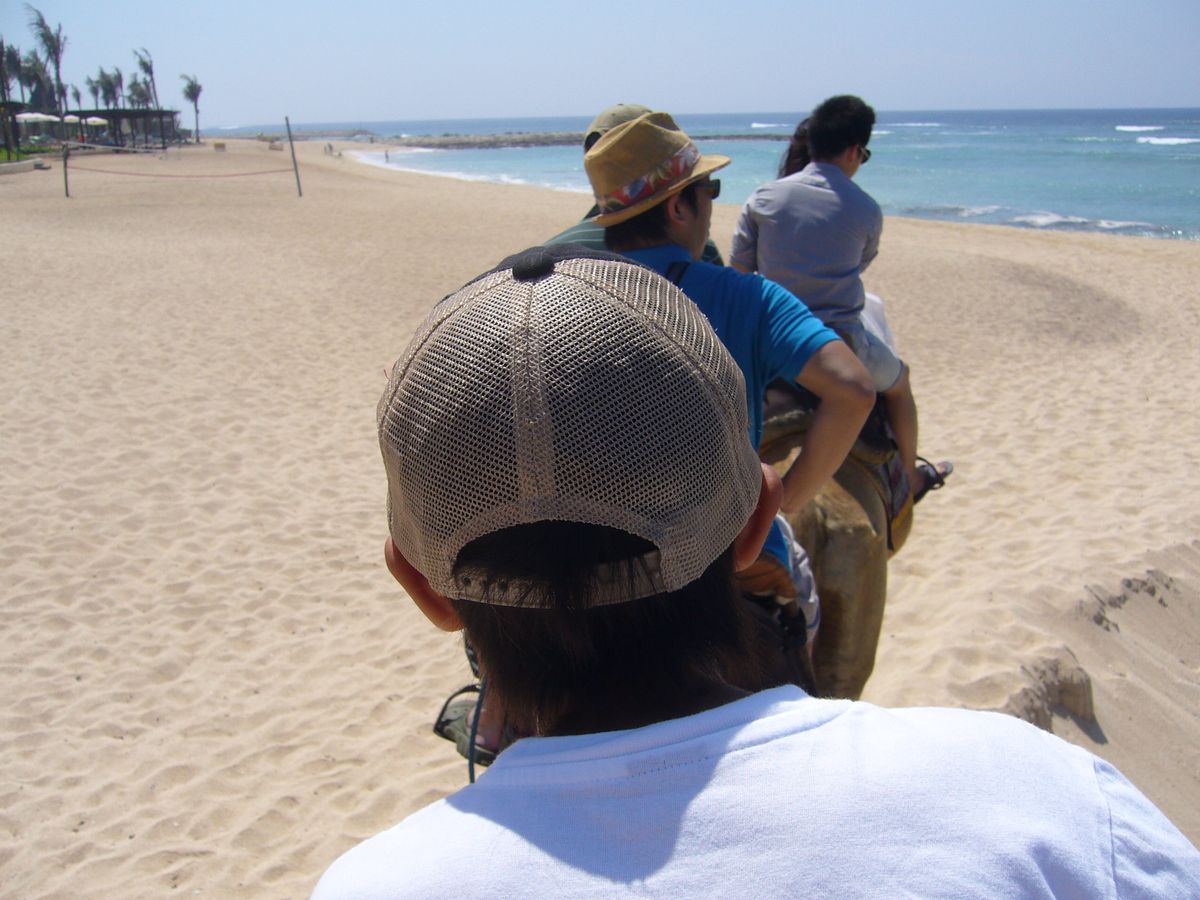 二人ずつ乗って、ニッコーバリの砂浜からリッツカールトンまでのお散歩です。