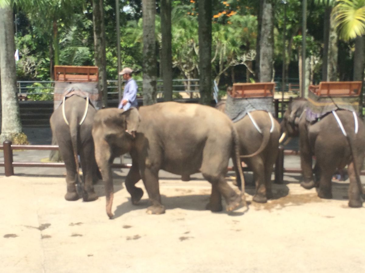 順番待ちは結構あったけどショー観覧や象達におやつを上げたり、触れられたり。