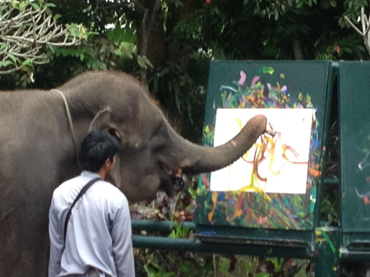 初めは乗り気ではなかったが、実際に行ってみると、象に乗って、触って、ショーを見てと大いに堪能できました。