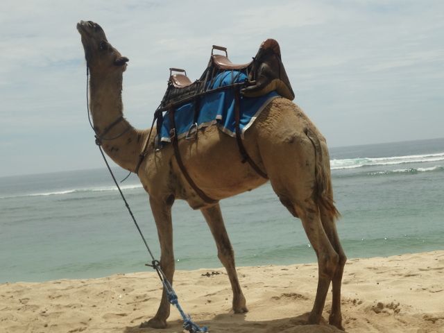 波の音を聞きながらの、ラクダでの散歩は最高でした。