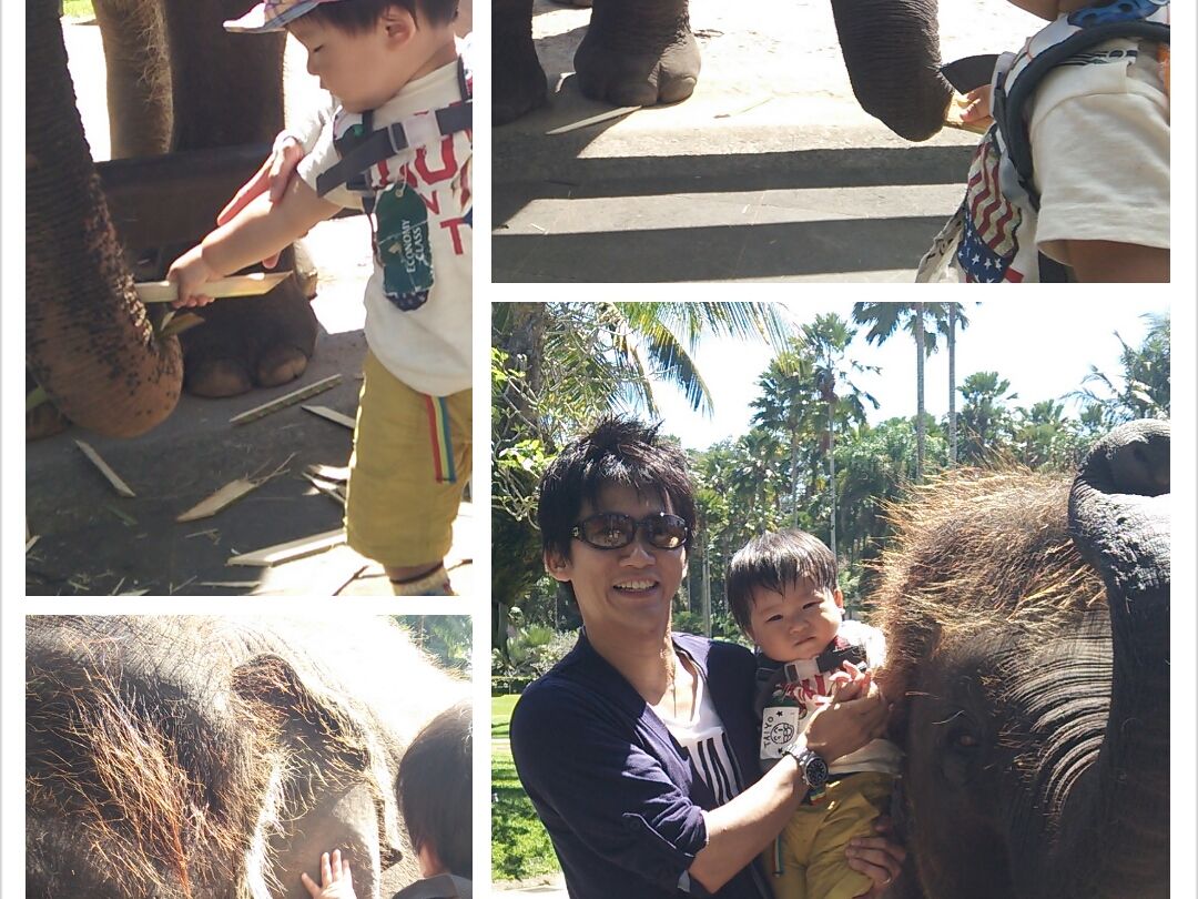 今回、1歳3か月の子供を連れて参加しました。いつもは、図鑑で見せていた象さんに触れ、実際に餌をあげ、さらにその背中に乗れて、大興奮の一日でした。