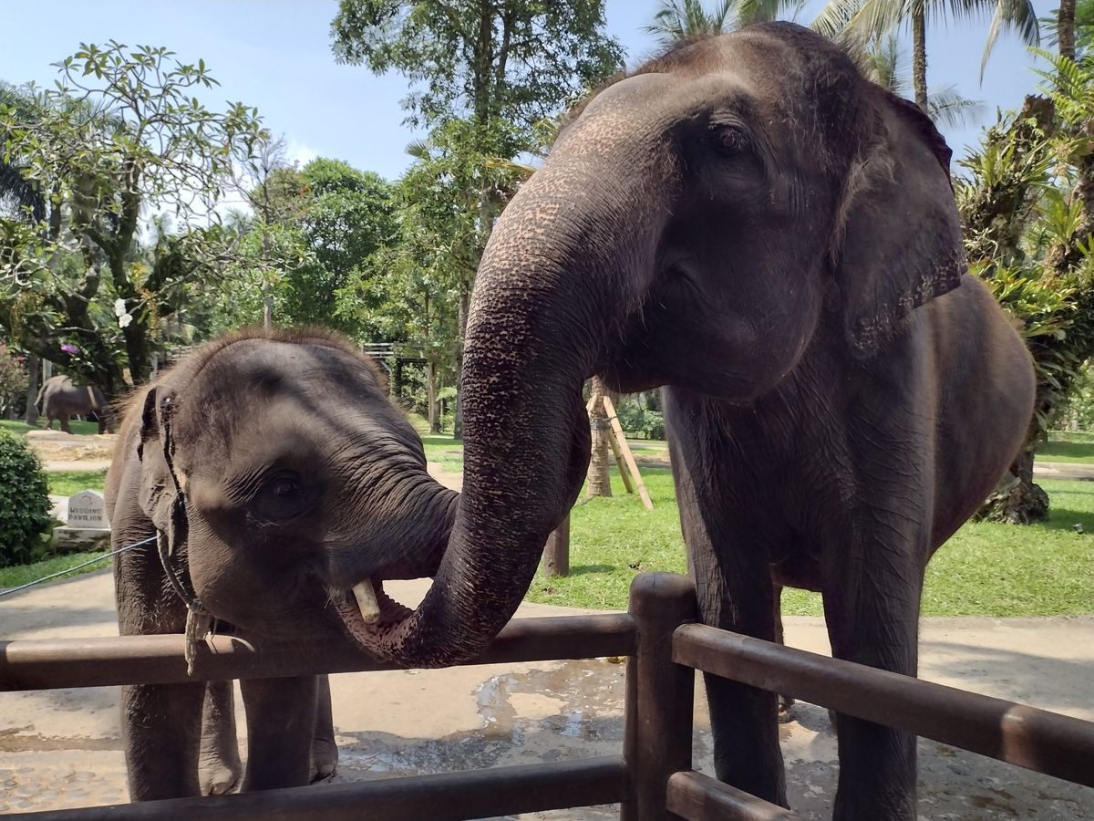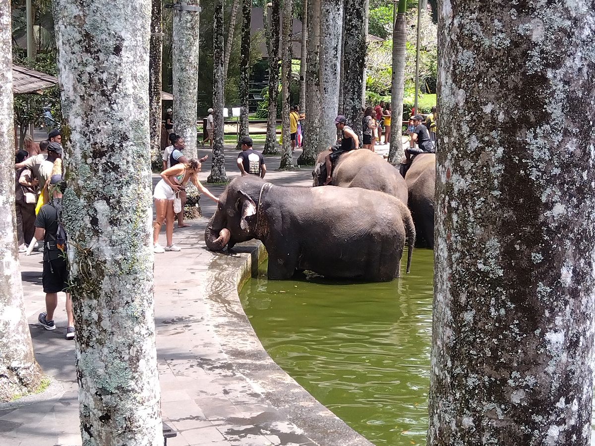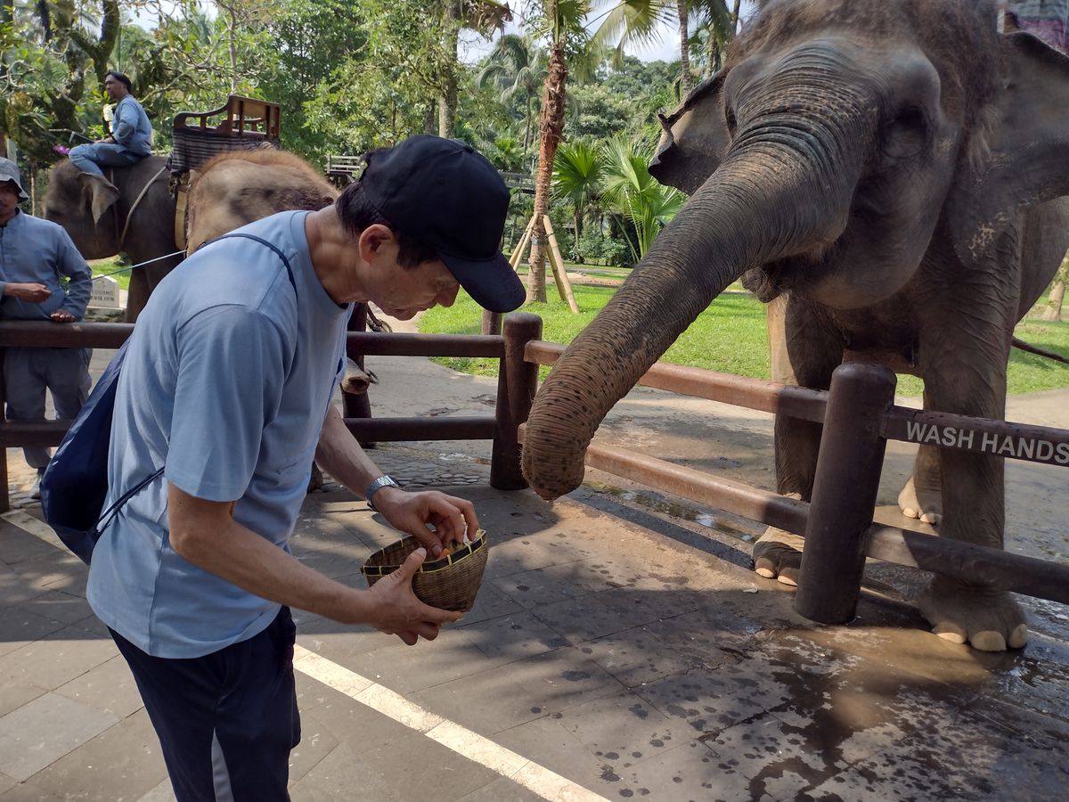 象は可愛くて、施設も良く小まめに掃除していて綺麗でした。ヌサドュアから向かったので2時間位かかりドライブがハードでした。運転手さんは丁寧にしてくれますが、バリの交通渋滞とウブドの山の道の悪さにグッタリしてしまいました。象乗りには1時間以上待ちましたが、象に餌をあげたり食事したりしながら待つので楽しく待てました。象の餌は無料の物と500円のバナナやリンゴのカゴがあります。象は無料のバナナの茎?は受け取ってもポイっとして、カゴのバナナなど欲しがります。スタッフさんが象と一緒の写真も撮ってくれます。象がポーズをとってくれて鼻を体に巻きつけてきたりと楽しかったです。私はしなかったですが、水着などを着て象にまたがりそのままプール池にボチャンと使ったりするアトラクションもやってました。池は当然ですが汚いです。自分の番が来るとスタッフさんが呼んでくれました。象に乗るのは初めてでしたが楽しかったです。