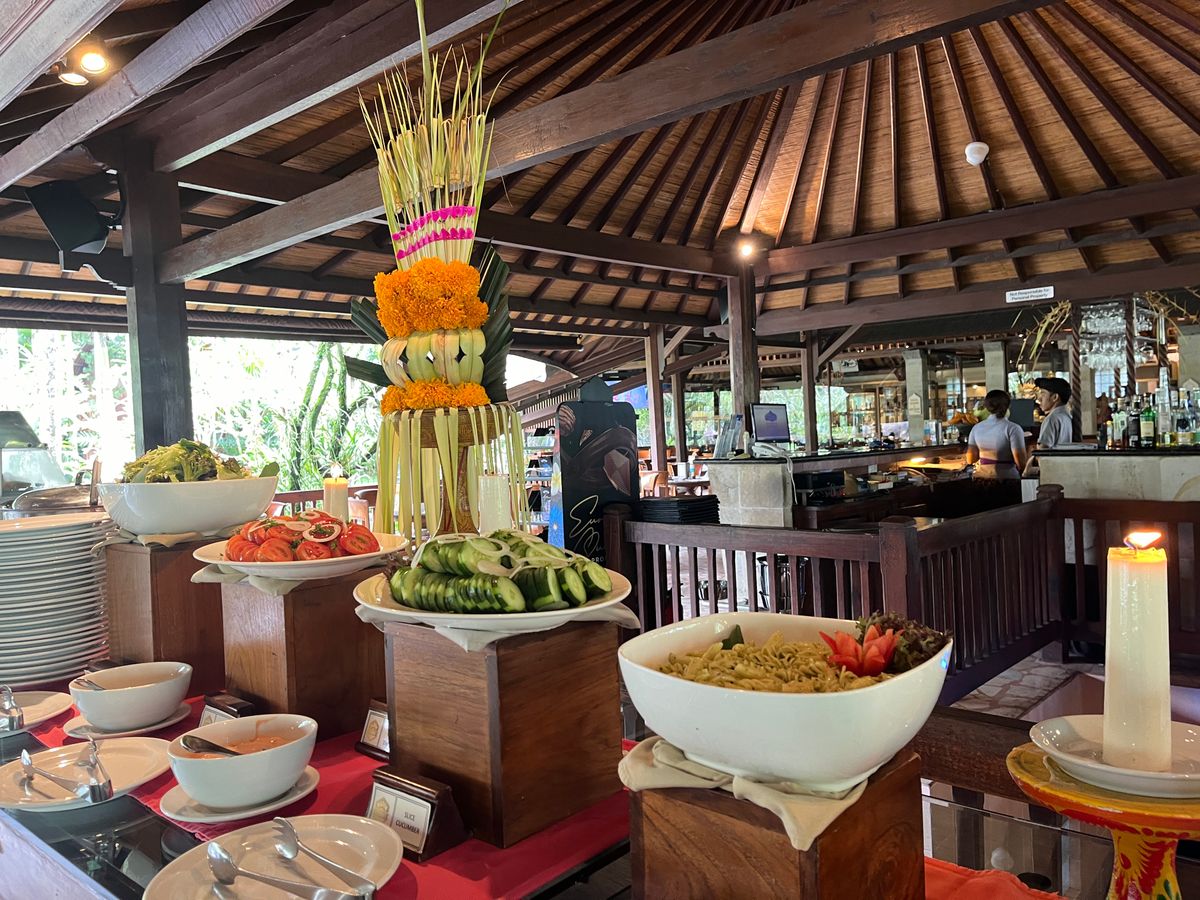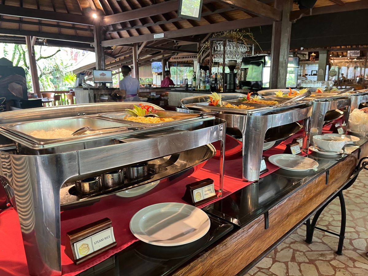 少しパーク内でゆっくりした後キンタマーニへ移動。見事にバトゥール山が観られました。数年前の口コミを読んでやや不安だったレストランのバイキングは綺麗になっていて、ハエなどたかることなく美味しくいただきました。ただ、ホテルバイキングに比べて種類が少ないので、旅行代金に昼食代が含まれていた5歳の娘は食べられるものがなく、向かいにあるコンビニで昼食を調達しました。(こちらは想定内でした)大人が美味しかったので問題ありません。