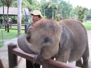 今回の象使いさんは私たちの日本での収入などを聞きたがる人だったので、馬鹿正直に額を答えると「自分はどんなに頑張っても日本に休暇で旅行になんか行けないのに、あなた方は休暇でバリに来れる・・・」としょんぼりされてしまいました。日本の物価がとても高いこと、時間にうるさくて1分でも遅刻したら叱られること、殺人的な通勤ラッシュと通勤時間など大変なことを力説しましたが、もしそういうタイプに当たった場合は額については少なめに話して何年もかかってお金を貯めてやっと来たんだよという風に控えめに言った方がいいかも知れません。バナナの値段を話したら固まってました。