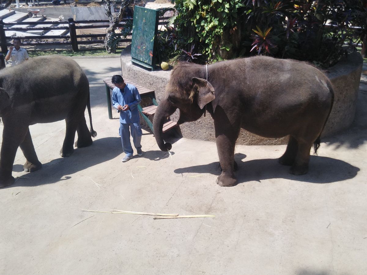 餌やりや記念撮影等、日本の動物園ではまず近づけない距離で象との触れ合いが出来ました。