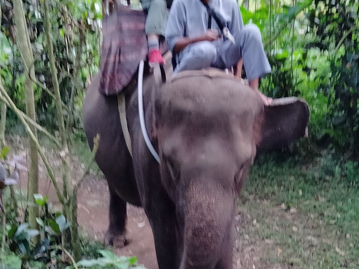 乗ってる最中に彼女が「特別に!!!」写真を撮ってくれました。後から確認したら、足から上しか映っておらず、象に乗っている写真ではない。