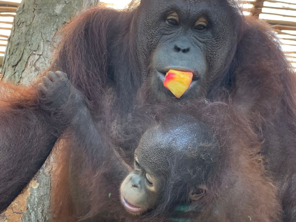 食事をしていると飼育員さんがオランウータンを始め、いろんな動物を連れて来てくれます。