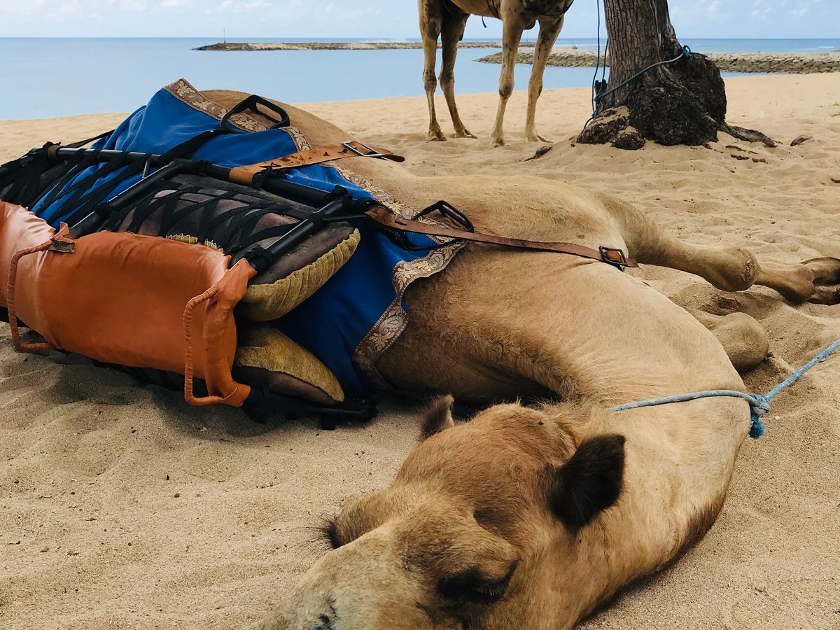 ホテルの庭にいるラクダにのり、海辺を散歩しました。ラクダを引っ張ってくれる方と、写真を撮ってくれる方、1人ずついたので、写真も40枚ほど撮って頂きました!本当に最高な写真をいくつも残すことができました。時間は30分で丁度良かったです。