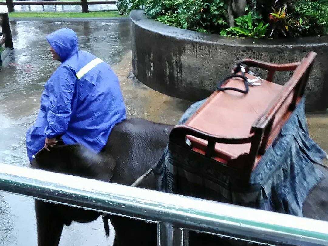 象乗りとても楽しかったです。大雨でしたが、ボンチョを借りて乗りました。スタッフの方も象遣いの方も日本語が話せる人もいて、かつ親切で手際よく多国籍の観光客をさばいてました。象に乗っている間も写真スポットで止まってくれたり、サービス満載でした。象に乗ったまま池にも入るのでとっても貴重な体験が出来ました。池の写真スポットでは象が鼻から水しぶきを出してくれました。また、象の餌やりもでき、かなり接近して象と楽しむことが出来ます。象が鼻を腰に回してくれるので写真も撮れます。鼻に触れることもできました。象はとても愛嬌があって楽しかったです。そして、お昼のブッフェ会場からも象が池に入る所が目の前に見えるので、写真がとっても撮りやすいのもよかったです。お昼ゆっくりしてから象のショーを見ました。目の前でとても大きな象が3頭ショーをするのは迫力があり、内容も笑えたりと楽しいショーでした。その後、ピックアップの車まで案内もスムーズでした。