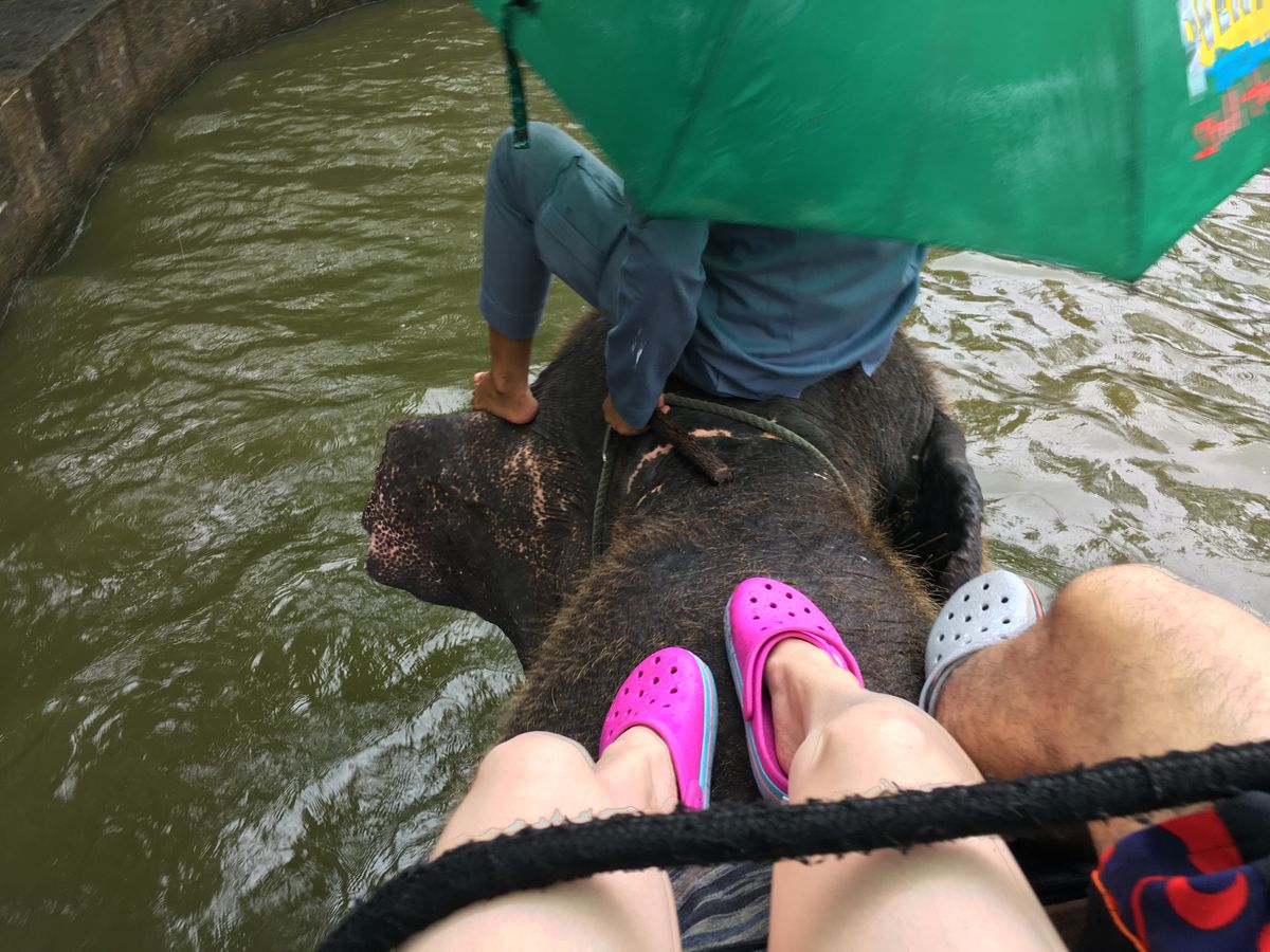 ぞう乗り体験は、タイでもしましたが、このツアーでは籠なしのぞうに、直に乗せてもらい、共に水浴びを楽しむなんて、終始顔が緩みっぱなしでした。ぞうさんのブラッシングは、ぞうと会話をしているように感じ、温かい皺だらけの体と、ちょびちょび生えてる毛も、つぶらな瞳もどれもが愛おしく、ますますぞうが大好きになりました。