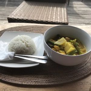 又 小舟に乗りハウスに帰って来たら、お昼ご飯。ずっとナシゴレンとか食べてたので今回チョイスはチキンカレーにしました。