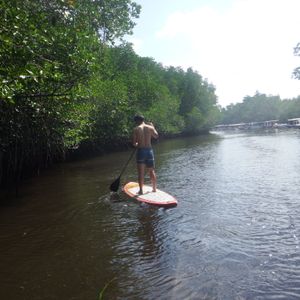 マングローブまで行くのに海をパドルボートで漕ぐのに必死で疲れ果て、海に入ってボードを押すはめに・・・。そのわりにマングローブ干渉が少ない。