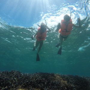 シュノーケルですが、だいぶ深い所も行くので巣潜りしてみたり、楽しかったです。下の方でダイビングをしてる人もいました。ライフジャケットも貸してくれるので、泳げない人や潜って遊ばない人も大丈夫です。