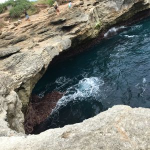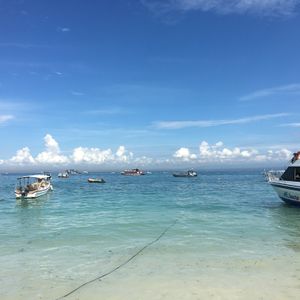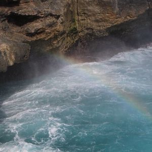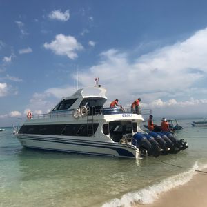ホテルからお迎えのバンに乗りサヌールのフェリーターミナルへ。ここで日本人ガイドの方と落ち合い、ツアーが始まりました。まずは100人乗れるという高速ボートでレンボンガン島へ。ボートへの乗り込みと降りる時はwet riding&landing で靴はみかん箱程度のプラスチックの籠に放り込まれますので他人の靴と紛れるのが嫌ならスーパーの袋を持参して中に入れて別に持ち込むことをお勧めします。他の荷物は手が空くように背負うべきです。乗り込みと降りる時は補助がないと結構大変でした。皆さん船酔いの事を書いていますが、かなり天候に左右されるようで私達が乗った時は波が無くほとんど揺れませんでした。レンボンガン島の波止場(Travel Ports Tj.Sanghyang)からはトラックの荷台を改良したオープンエアのバンに乗ってレンボンガン島の北にあるWarung Okaへ。ここで荷物を預けてシュノーケルに必要なもののみ持ってフロートのついた小さな船に乗り込みました。出発時から中に水着を着込んで行きますが、日焼け対策は必要です。長袖のラッシュガードを着て下は黒のスパッツを履いて行って正解でした。ペニダ島のwallと言われる部分から大型のアジがいるjettyまで流されようにシュノーケルしながら移動し、再びボートに乗ってマングローブの近くまで移動したのち再びシュノーケルを行いました。水は非常に澄んでいて魚影もはっきり見えます。魚は小型のものが多かったですが、珊瑚の種類も豊富で起伏に変化があり大満足でした。ボートは再び出発時のWarung Oka に到着。シャワーを浴び服に着替えて昼食を食べました。またトラック改造バンに乗って観光。島で一番古いヒンズー教寺院とデビルズティアーをみて島の波止場へ。喫茶しながら船を待った後、行きと同様靴を脱いで船に乗り込み、朝集合したフェリーターミナルへ。ホテルへ戻ったのは5時過ぎでしたがとても充実したツアーでした。