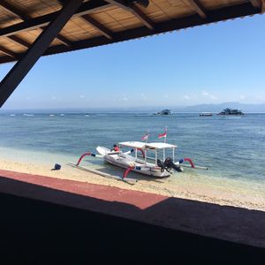 レンボンガン島へは乗合船でいきました。満席だったのでちょっと窮屈でしたが、高速船ですから35分ほどで着きました。港からレストランへ、My Dive Baliのツアー参加者(この度は8名)で移動(5分)し、シュノーケリングと島内観光の説明がありました。いざボートに乗ってポイントへ向かい、3ポイントでそれぞれ20-30分、合計1時間以上、たっぷりシュノーリングを楽しみました。それぞれのポイントでサンゴや魚の種類が変わりあきることがありませんでした。昨年参加したツアー(オーシャンラフティングで3島めぐりとシュノーケリング・英語ガイド)では透明度が悪く、時間も短かったので満足感が得られませんでしたが、こちらのツアーは大満足でした。やはり日本人ガイドさんのおもてなしの心が際立ってました。ありがとうございました。シュノーケリングだけのツアーがあれば、来年また参加したいです。レストランのシャワーとトイレはあまりきれいでないので、水着が乾くまで待って着替える程度の方が良いかもしれません。