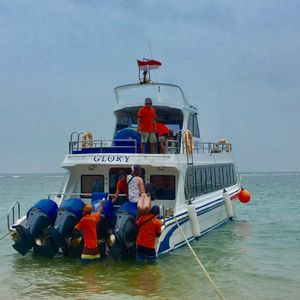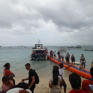 レンボンガン島へ行くのにエンジン付き乗車定員100人位の船に乗るのですが、となりで一緒に並んでいた別会社の船は乗客搭乗後の出発前に風で煽られて船が横転しそうになったりしていました。