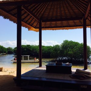 島に着いてからは、すぐトラックでビーチハウスへ移動。15分くらいでした。ビーチハウスに着いてまずミネラルウォーターをもらい好きな席を決めました。スケジュール説明があり、私たちはまずシュノーケル、その後ランチ、パドルボートでマングローブ巡り、自由時間。そして15時出発で村の塩工場やビューポイントに連れて行ってもらい、16時に島を出ました。ウブドのヴィラには18時くらいに戻りました。スケジュールはその日によって変わるようです。