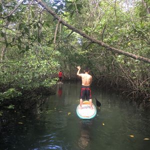 マングローブの森の中をSUPで探検するのは大人でも童心に戻ります。