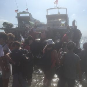 スピードボートに乗るときは履物を預けます。砂だらけで戻ってきますのでビーサンがオススメです。また桟橋はありません。ビーチから直接乗り降りしますので波によってはお尻まで濡れている方もいました。