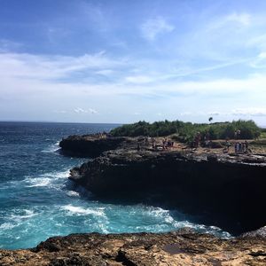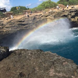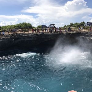 今回のバリ島旅行では1日1日を充実させて過ごしたかったので、こちらのツアーを選ばせて頂きました。7:30にホテルでピックアップしてもらい、船乗り場へ移動。そしてそこから船に乗って離島であるレンボンガン島へ移動しました。本島の海も透明度は高いと思いますが、やはり離島の海の透明度は別格でした。ガイドの方も日本語が上手で、シュノーケル前の事前説明では各スポットで見ることのできる魚をあらかじめ教えてもらえました。そしてマスコット犬のバリ君と沖の方へ移動。海の中へ飛び込むと色とりどりの大変美しい魚達が沢山周りを泳いでおり、水の中にいるのを忘れてしまうくらい素敵な時間を過ごすことができました。魚とふれあうことができるように、ガイドの方が餌をくれるので、手で直に魚と触れあえます。また、水中カメラで沢山写真もとってくれる(無料です)ので、帰国後も色あせない思い出がつくれます。シュノーケル後はコテージにもどりシャワーをあび(これは外に備え付けられているので、服を脱いで体を洗うのは難しいです。でもすぐに乾くし大丈夫です)て、昼食をとりました。私達の時はナシゴレンとサンドイッチがメニューにあり、お互いのをシェアして食べましたがどちらもとても美味しかったです。昼食後はレンボンガン島の観光名所を車で移動しながらみてまわります。悪魔の涙と呼ばれる、断崖絶壁や、美しい島の風景がみれるスポットに案内してもらったり、シュノーケル以外にも盛りだくさんのとても充実したツアーでした。帰りも船で本島へ戻ったのですが、この時の船は大変小さく揺れも激しかったため、船酔いしやすい私にはやや辛い30分間でした。でも、そんなこともどうでもよくなる程に、素敵なツアーだったと思います。
