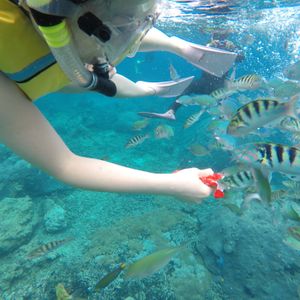 初めてのシュノーケリングでしたが、海がすごく綺麗で感動しました。ガイドさんも優しくて面白いので、とても楽しかったです!私たちは英語が得意ではなく色々と心配でしたが、ガイドさんは日本語ぺらぺらでとても安心でした。水中カメラで撮影した写真を後で送っていただけたのも嬉しかったです。