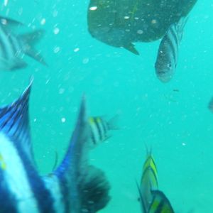 海はとてもキレイでした。様々な魚がすぐ近くを通り、ファインディングニモ*ドリーの世界だな〜と感動しながらの45分間でした。