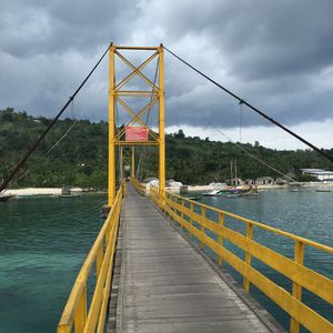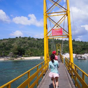青い海に映える黄色の小さな橋です!そこでも写真をたくさん撮らせていただいて、横の売店でアイスを食べました。料金はバリより少し高めやったかな?