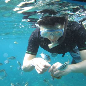 シュノーケリングを体験するのは初めてでした。ガイドさんが丁寧にマスクや呼吸の仕方を教えてくださり、シュノーケリングを十分に楽しめました。海の中をのぞくと、本当に透き通っていてずっと先まで見渡すことができて感激しました!たくさんの魚たちも見ることができ、とても思い出に残る体験でした。