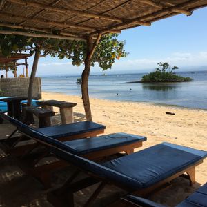 レンボンガンに着いたら車に10分程乗って海の家に行きます。この日は、朝から私達だけで海の家もほぼ貸切でラッキーでした。