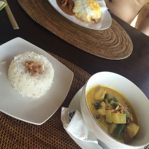 昼ご飯は3つのメニューから選べます。ナシゴレンとチキンカレーを頼んだのですが飲み物も含めてなかなか美味しかったです。日本人好みの味に作られているなと感じました。