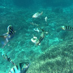 たくさんのお魚に囲まれながらのシュノーケリング。偶然ゴマモンガラに会えた!つがいで泳いでいて、あっという間にいなくなってしまったけれど、自分の好きな魚に偶然会えるって本当に嬉しいです。