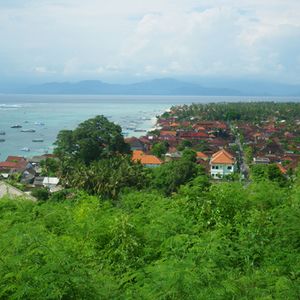 レンボンガンから船で50分位。結構揺れるので船酔いは注意が必要です。