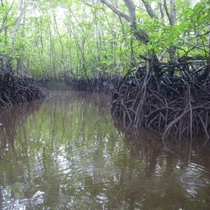休みの後、マングローブフォーレストにボートに乗って入りました。マングローブの間間になっている細い水の道をくぐ り抜けながら進んで行くとどこを見てもマングローブ~で本当に不思議な森の中に