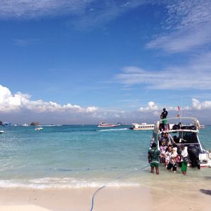 ・レンボンガン島へはサヌールから乗り合いの高速船で向かいます。混んでいると少し窮屈に感じるかもしれませんが、テンションが上がっているのでさほど気になりません。行ってみると分かりますが、島に近づくにつれてサヌールと海の色が全然違う事に本当にびっくりしました。