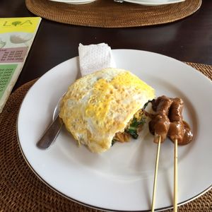メニューは、チキンカレー、ナシゴレン、魚から選べたのでナシゴレンを選びました。ナシゴレンは、野菜たっぷりで食べやすく非常に満足度が高いものでした。